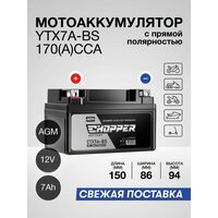 Купить Мото Аккумулятор CHOPPER AGM 12В 7 Ач (CT1207, YTX7A-BS)для мопеда, скутера, мотоцикла, питбайка, квадроцикла ИБП 12V 7Ah с доставкой по всей России.