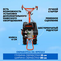 В качестве силового агрегата на мотоблоке используется четырехтактный бензиновый двигатель Loncin 170F-2 с мощностью 7 л. с. Надёжный двигатель обеспечивает бесперебойную работу при интенсивном использовании, а установленный датчик уровня масла предотвращает повреждение двигателя при понижении уровня масла в картере ниже необходимого.