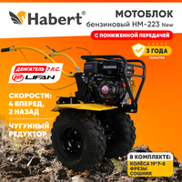 Мотоблок бензиновый Habert HMN-223 New (Lifan 170F), 7лс, колёса внедорожные 19*7-8, КПП 4 вперед 2 назад