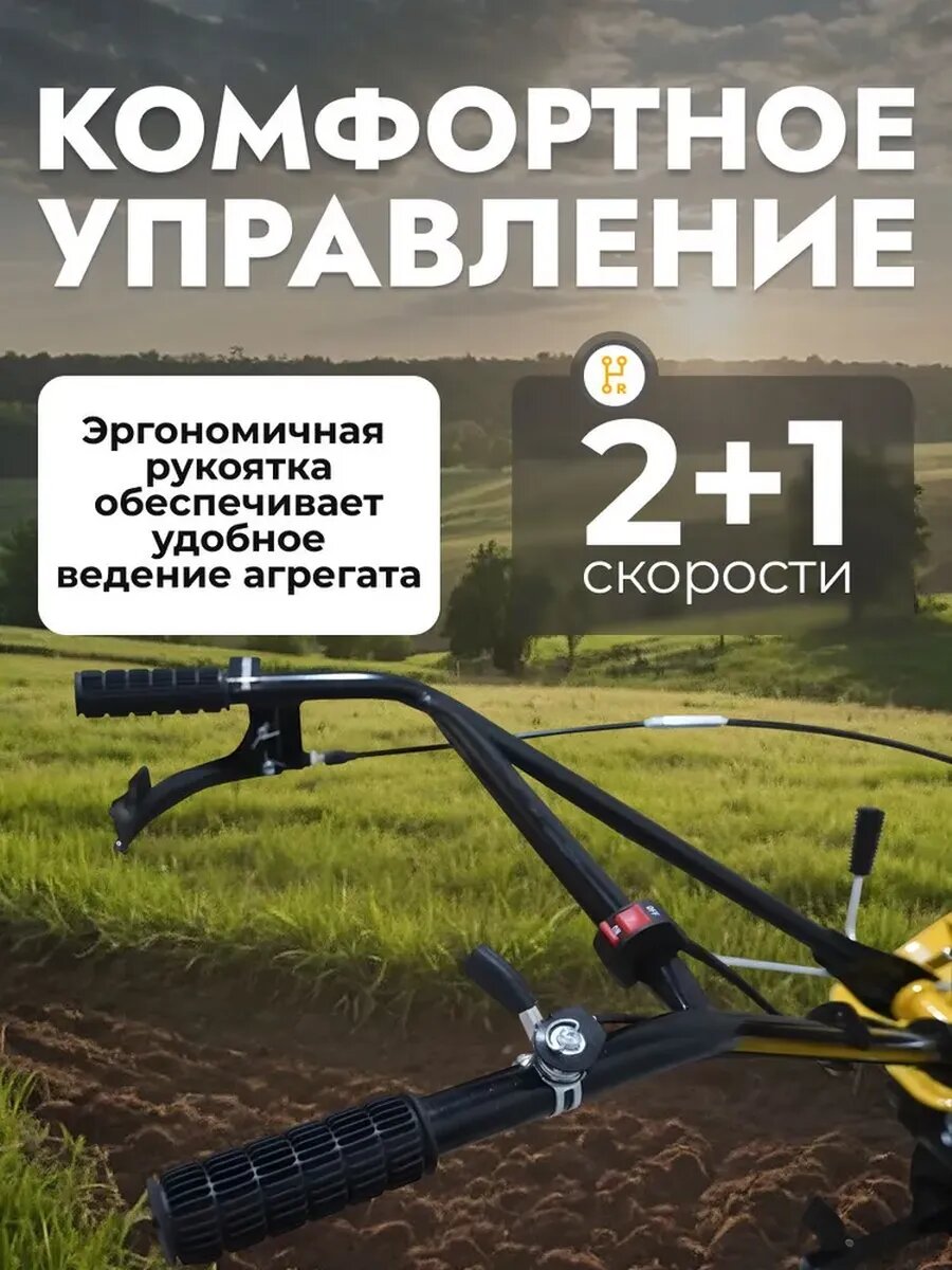 | Комплект поставки | Мотоблок Фрезы (3 группы по 4 ножа с каждой стороны) Сошник Кронштейн передней сцепки Руководство Упаковка |