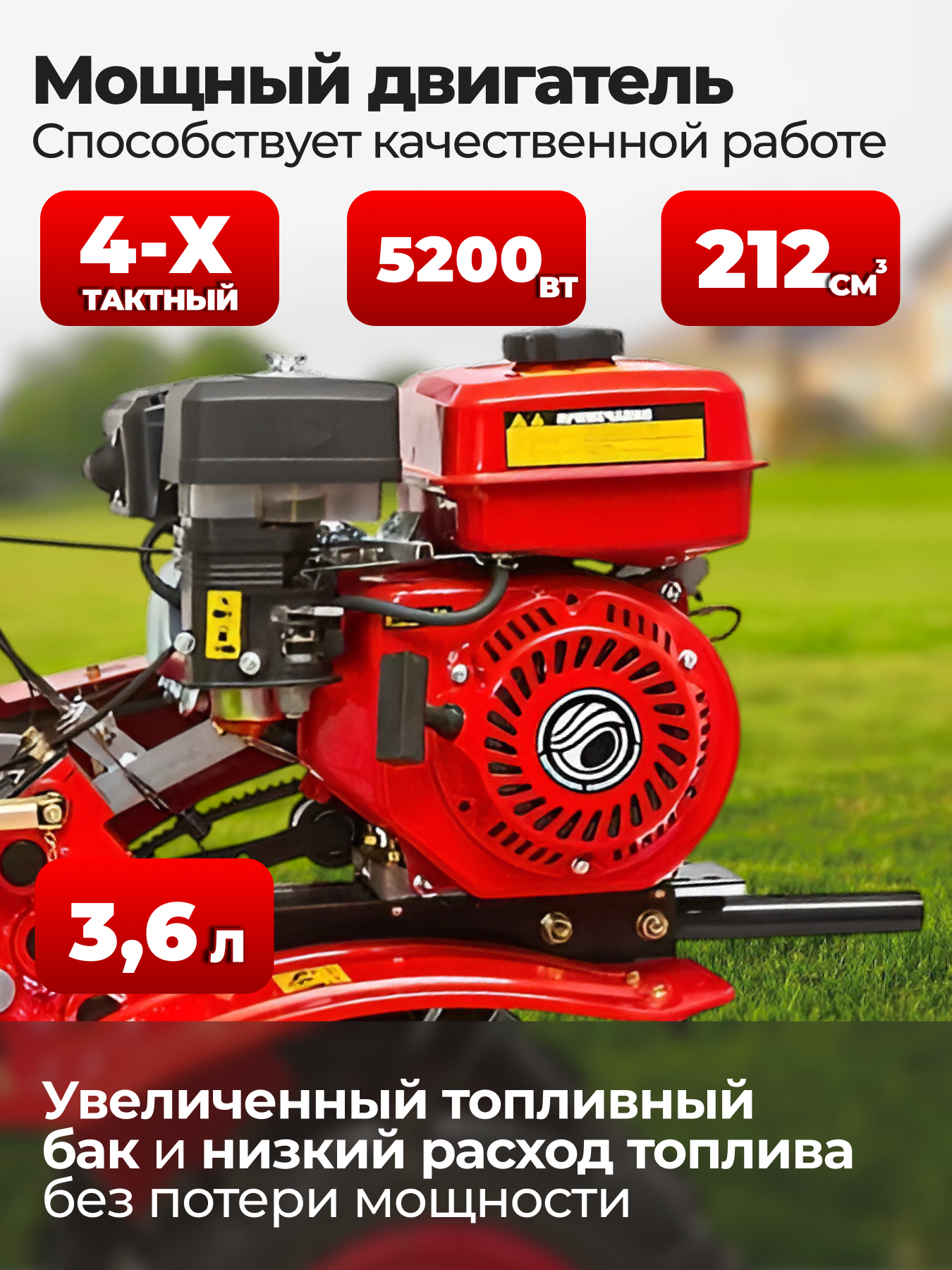 | Комплект поставки | Бензиновый мотоблок; Фрезы (24 ножа); Колеса 4.00-10; Инструкция |