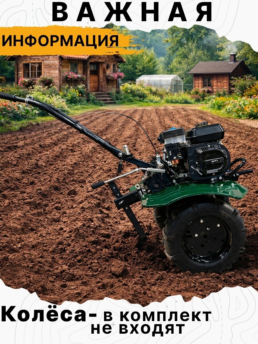 | Подробная комплектация | Рукоятка управления дроссельной заслонкой; Рычаг сцепления; Выключатель зажигания; Рычаг переключения передач; Ограничитель глубины вспашки (СОШНИК); Фрезы-культиваторы (2шт); Защитные крылья; Заливная горловина двигателя (для масла); Сцепка; Топливный бак; Стартер; Колеса |