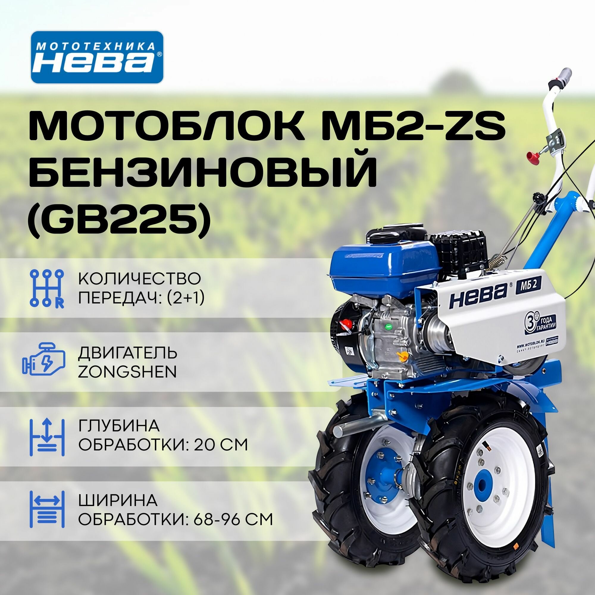 Мотоблок эффективно обрабатывает все виды почв, отлично тянет загруженную телегу по грунтовой и заснеженной дороге. Также эта модель используется для кошения травы, уборки снега и опавшей листвы. Мотоблок «нева» МБ2-ZS (GB225) сочетает в себе надежность, функциональность и практичность.