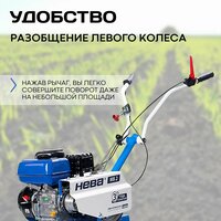Мотоблок «нева» МБ2-ZS GB225 имеет функцию разобщения левого колеса. Данная функция особенно полезна, когда во время вспашки или культивации Вы доходите до конца поля и Вам необходимо развернуть мотоблок на 180 градусов, чтобы продолжить работу. Нажав рычаг разобщения колес, Вы легко совершите поворот даже на небольшой площади.