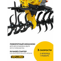 | Оснастка | грунтозацепы, картофелекопалка, косилка, окучник, плуг, прицеп/тележка, рыхлитель, снежный отвал, сошник, сцепка, удлинитель, фрезы |