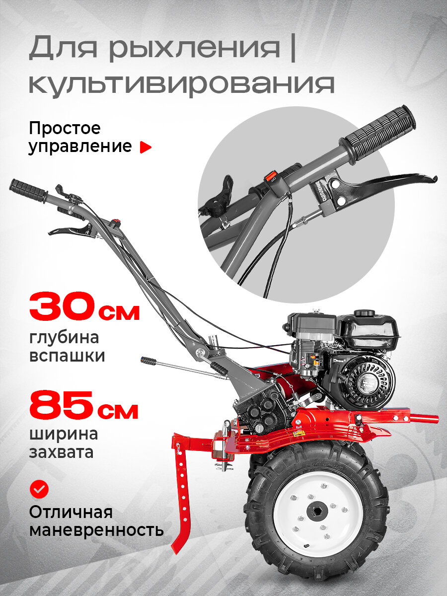 | Комплект поставки | Инструкция; Фрезы; Сошник; Прицепное устройство для сошника; Ключ свечной ; Крыло правое ; Крыло левое; Адаптер для навесного оборудования. |
