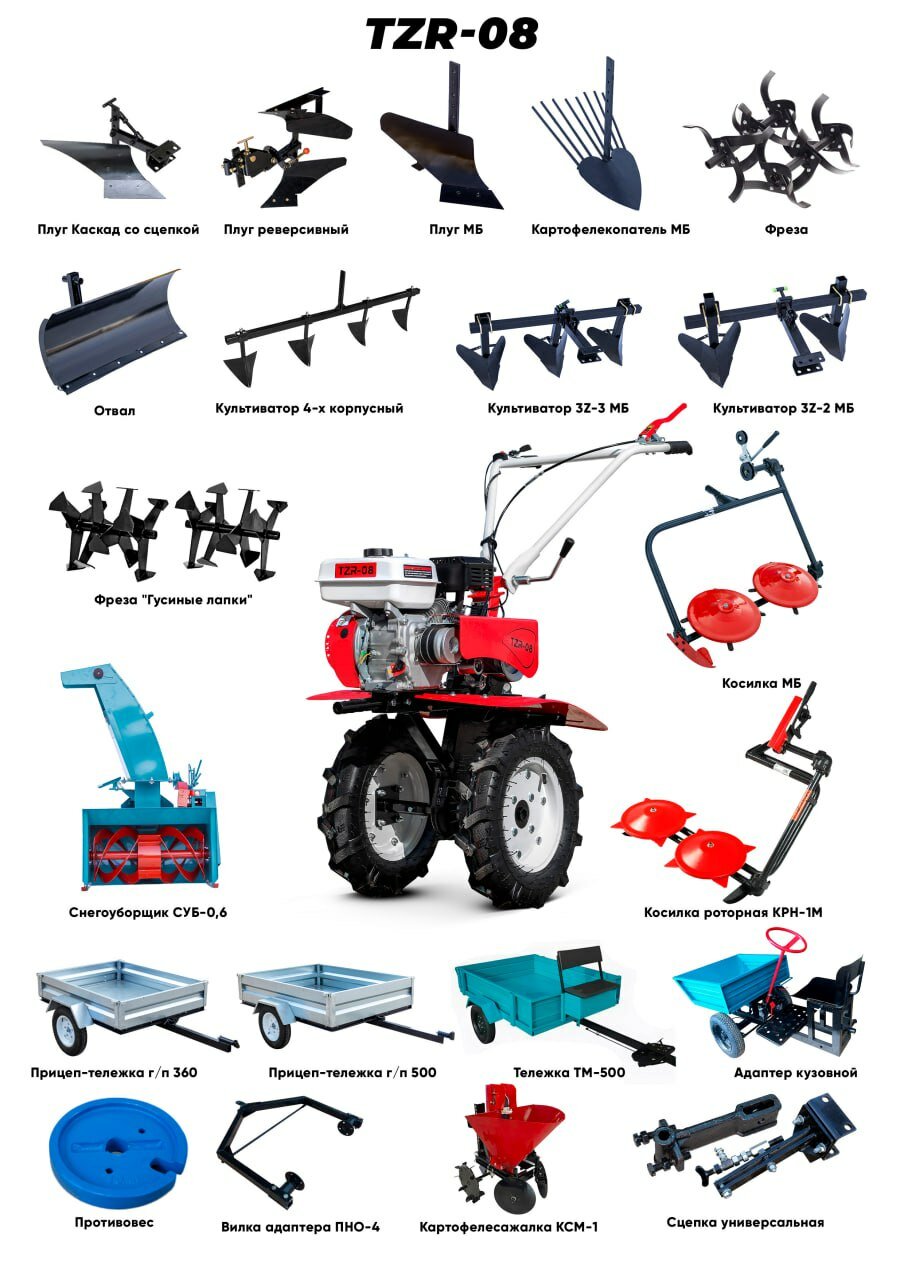 Мотоблок бензиновый TZR-08, 8 л. с, 3+1 передачи, широкие колёса 19 7.00-8: сравнение цен, характеристики, фото, актуальное наличие и цены.