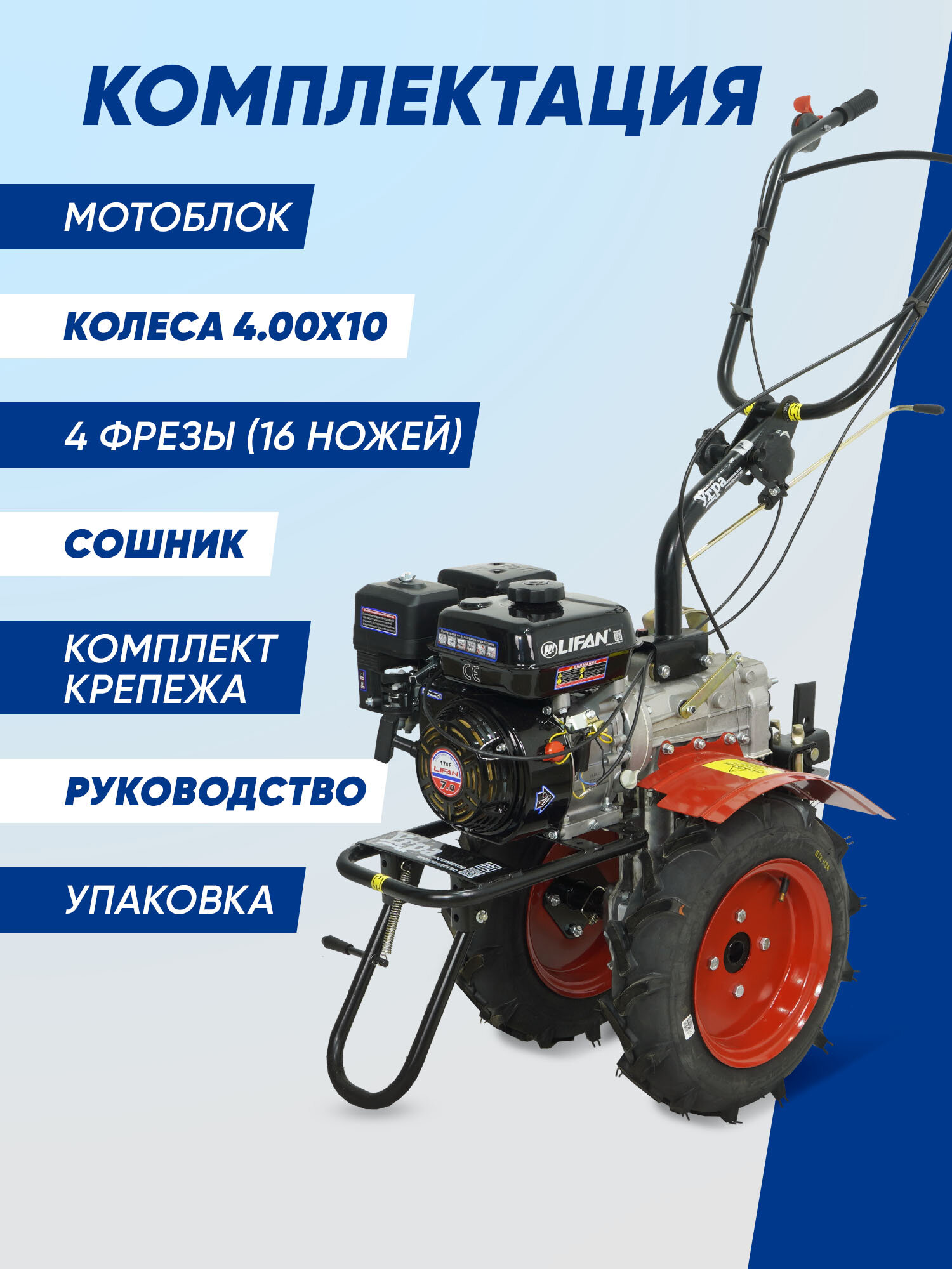 | Подробная комплектация | Мотоблок в сборе;Сошник;Колёса; Фрезы(16 ножей);Комплект крепежа;Руководство по эксплуатации. |