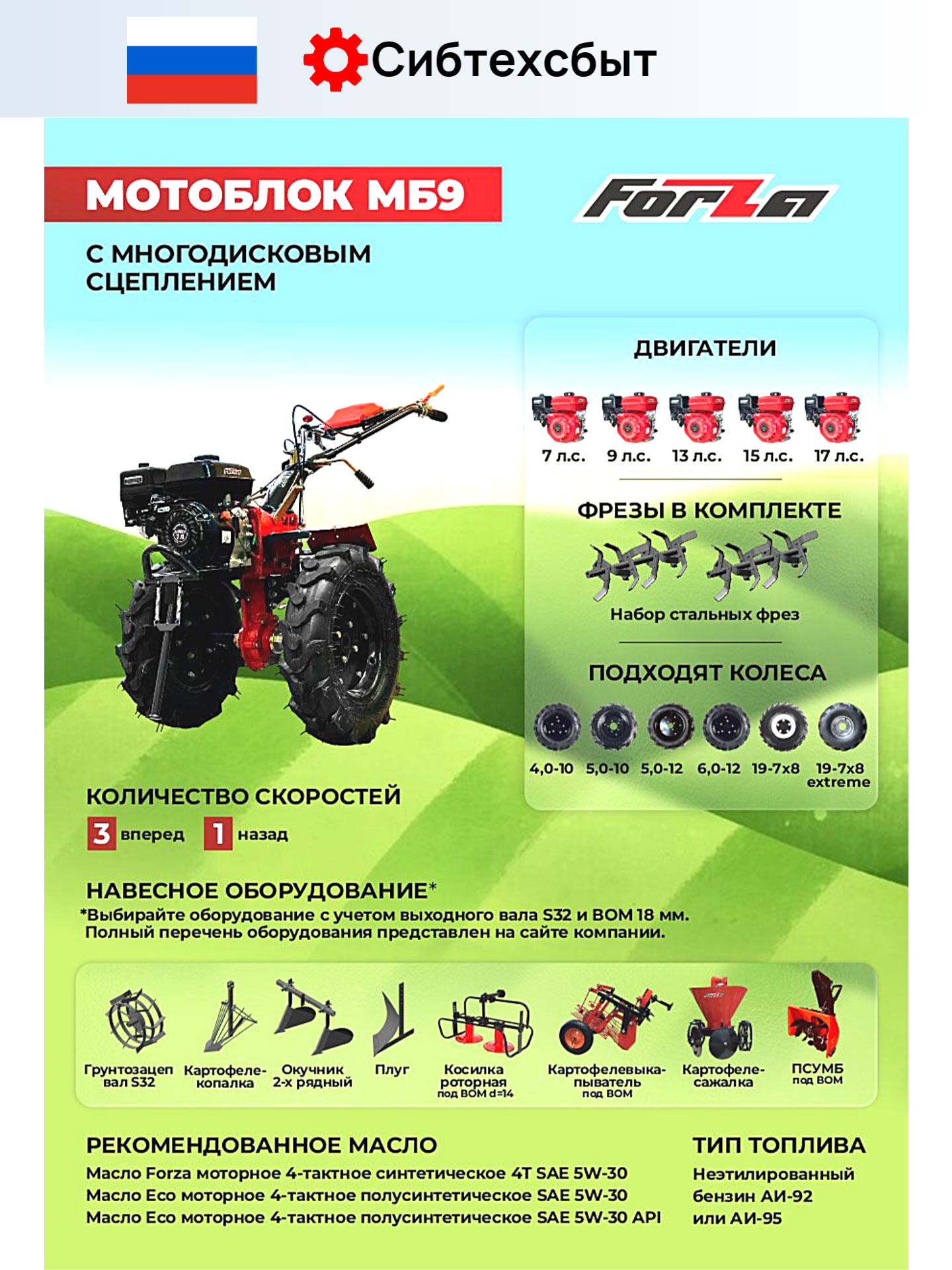Мотоблок Forza МБ9-1307 относится к классу средних-тяжелых мотоблоков.