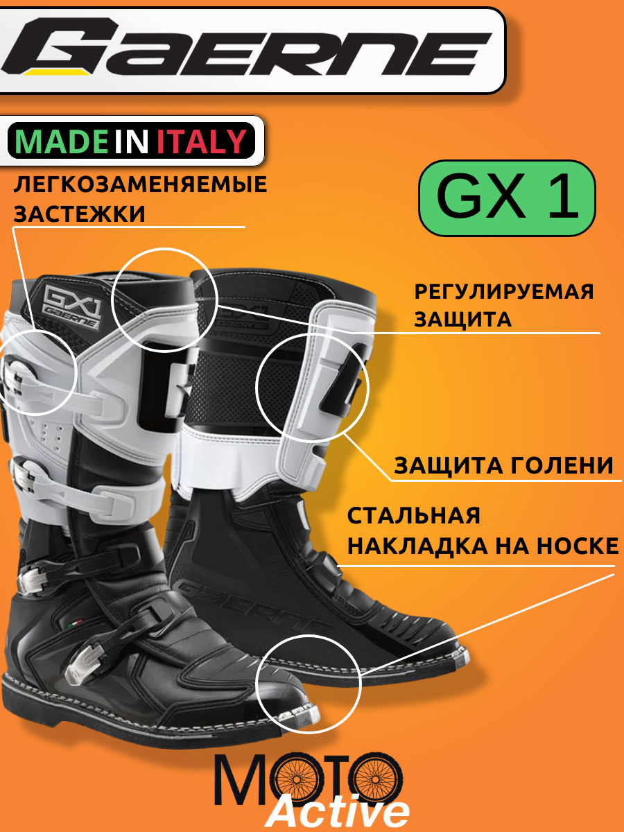 Купить Мотоботы Gaerne GX1 Goodyear, для кросс/эндуро, кожаные, на голеностопе, 47 размер с доставкой по всей России.