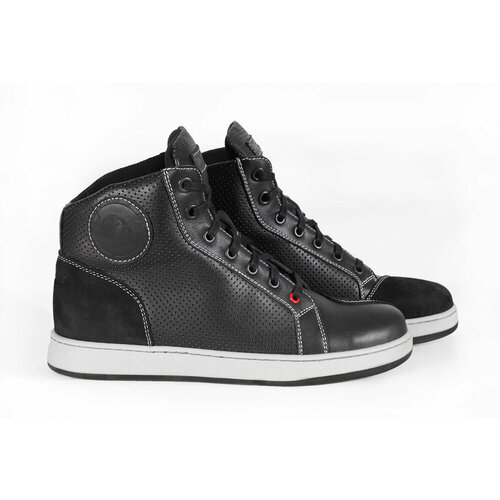 Стильные мотокроссовки INFAME из высококлассной натуральной перфорированной кожи, ручной работы. Идеальны для поездок по городу, а также для туристических поездок в жаркую погоду, так как имеют гораздо большую вентиляцию и меньший вес в сравнении с обычными мотоботами.