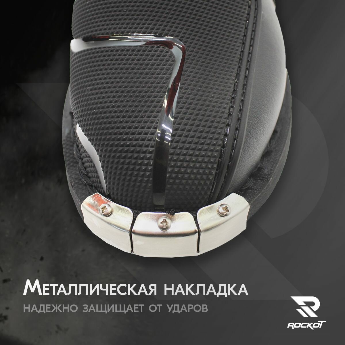 Металлические накладки на “носках” ботинок защитят пальцы ног, а также продлят срок службы мотообуви.