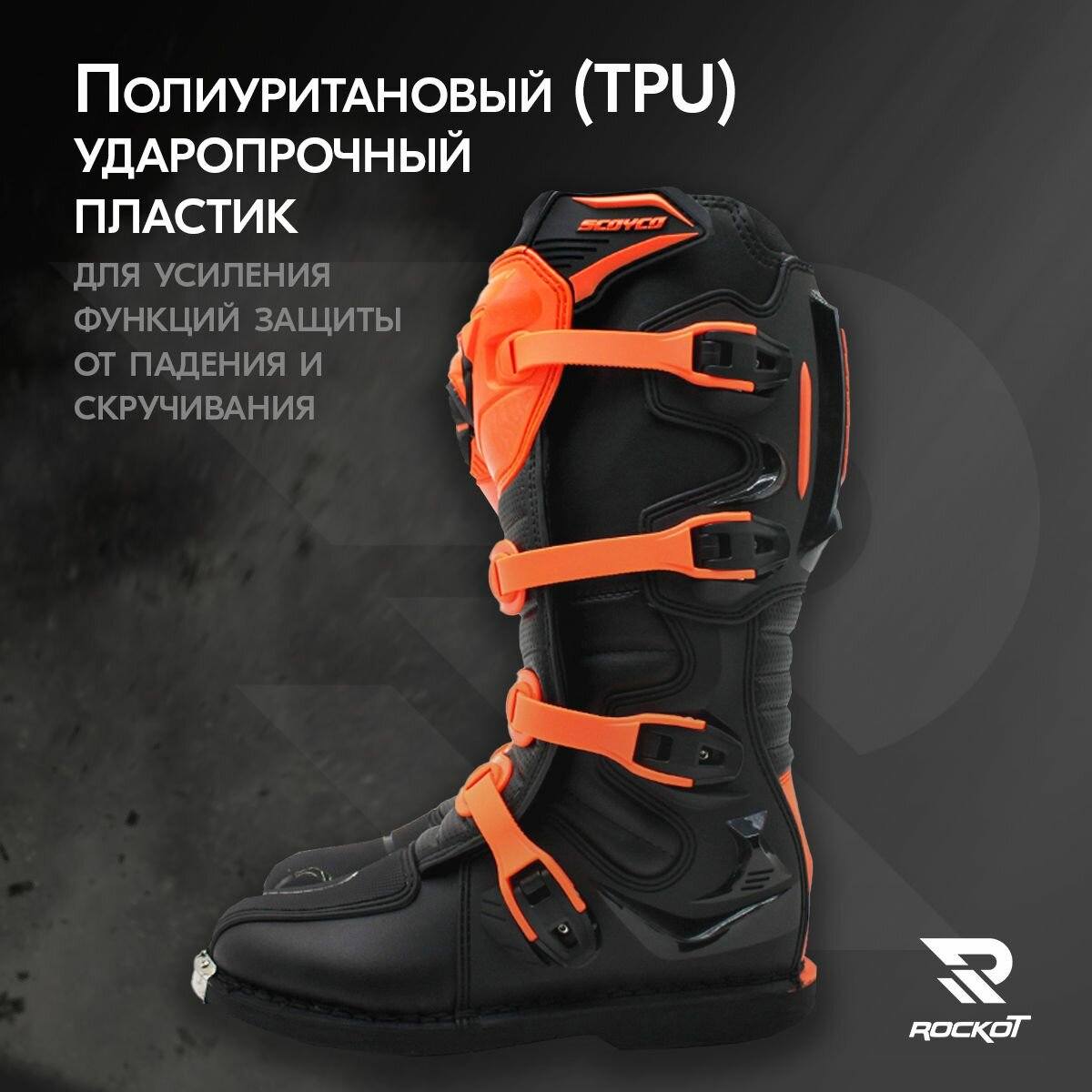 Мотоботы являются Важным элементом защитной экипировки, не менее важным, чем мотошлем. Мотоботы Scoyco обеспечивают хорошую защиту ступни, голеностопного сустава, голени, ортопедически правильную фиксацию голеностопного сустава. Выполняет защитные функции от ударных нагрузок и нагрузок на скручивание, что значительно сильно снижает риск получения серьезных травм в виде переломов и растяжений.
