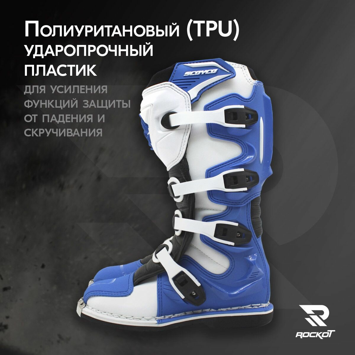 Мотоботы являются Важным элементом защитной экипировки, не менее важным, чем мотошлем. Мотоботы Scoyco обеспечивают хорошую защиту ступни, голеностопного сустава, голени, ортопедически правильную фиксацию голеностопного сустава. Выполняет защитные функции от ударных нагрузок и нагрузок на скручивание, что значительно сильно снижает риск получения серьезных травм в виде переломов и растяжений.