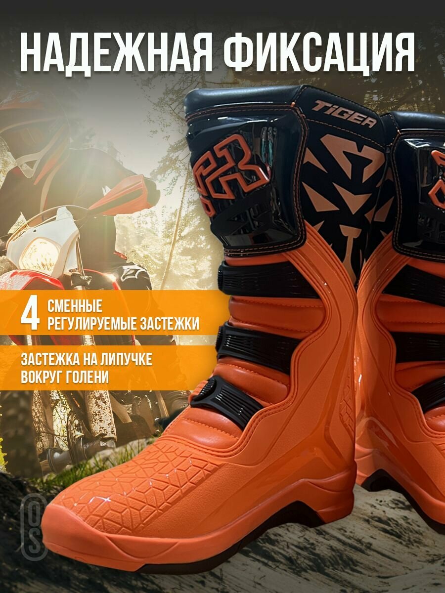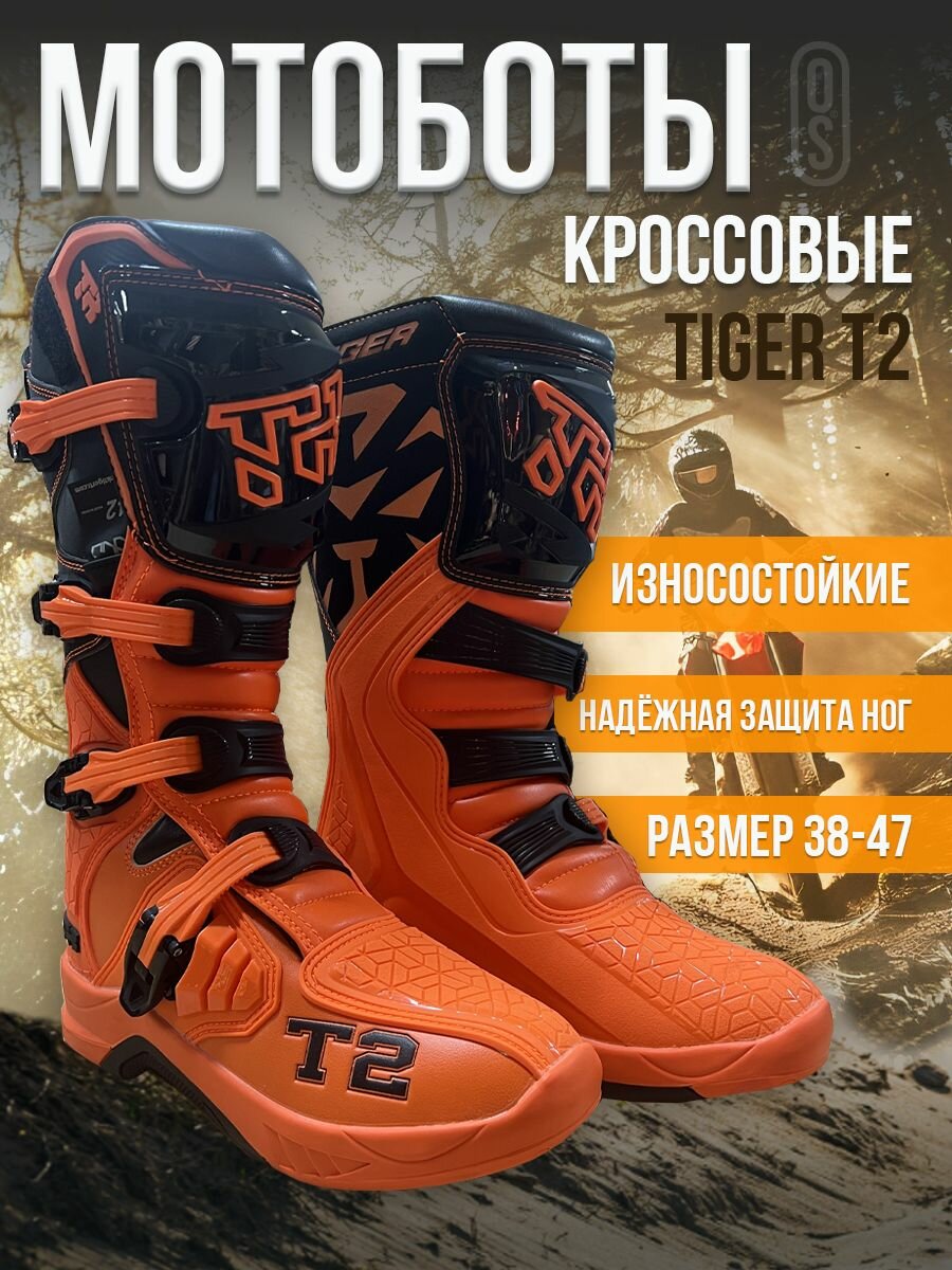 Купить Мотоботы кроссовые TIGER T2, оранжевый/черный 43 с доставкой по всей России.