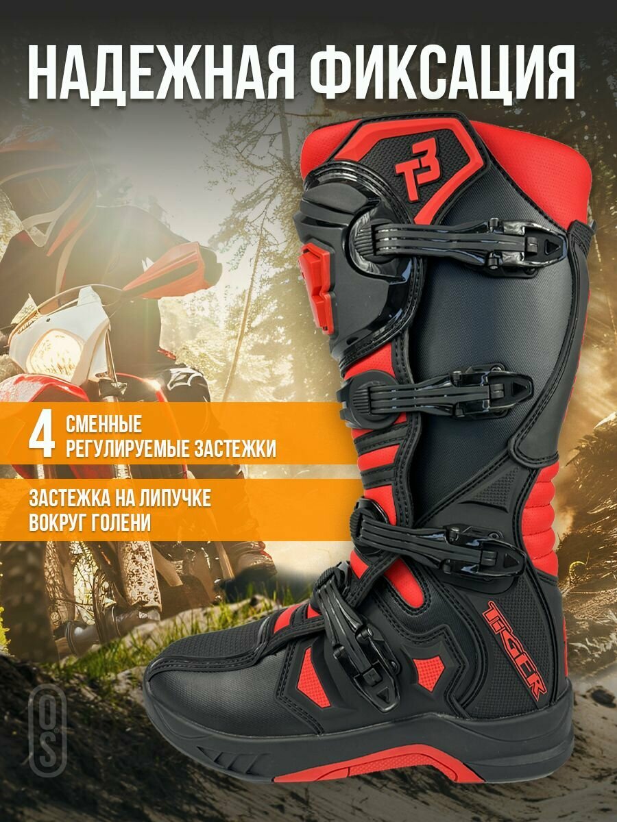 Мотоботы TIGER T3 черный/красный 44: сравнение цен, характеристики, фото, актуальное наличие и цены.