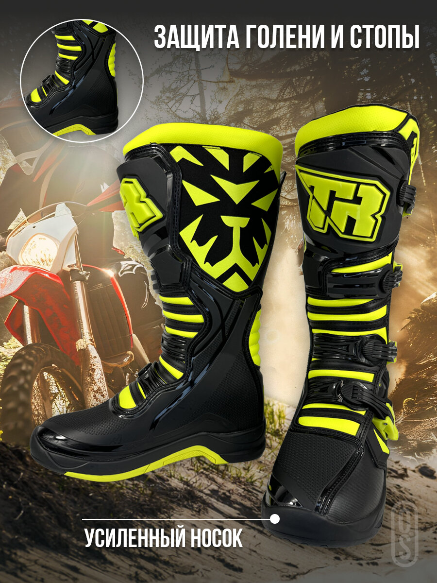 Мотоботы TIGER T3 черный/салатовый 43: сравнение цен, характеристики, фото, актуальное наличие и цены.