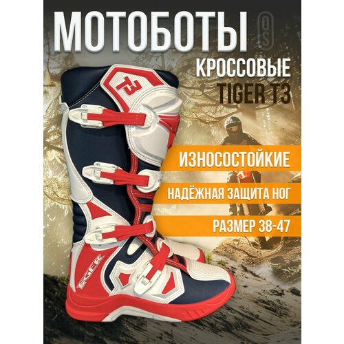 Мотоботы TIGER T3 синий/красный/белый 46: сравнение цен, характеристики, фото, актуальное наличие и цены.