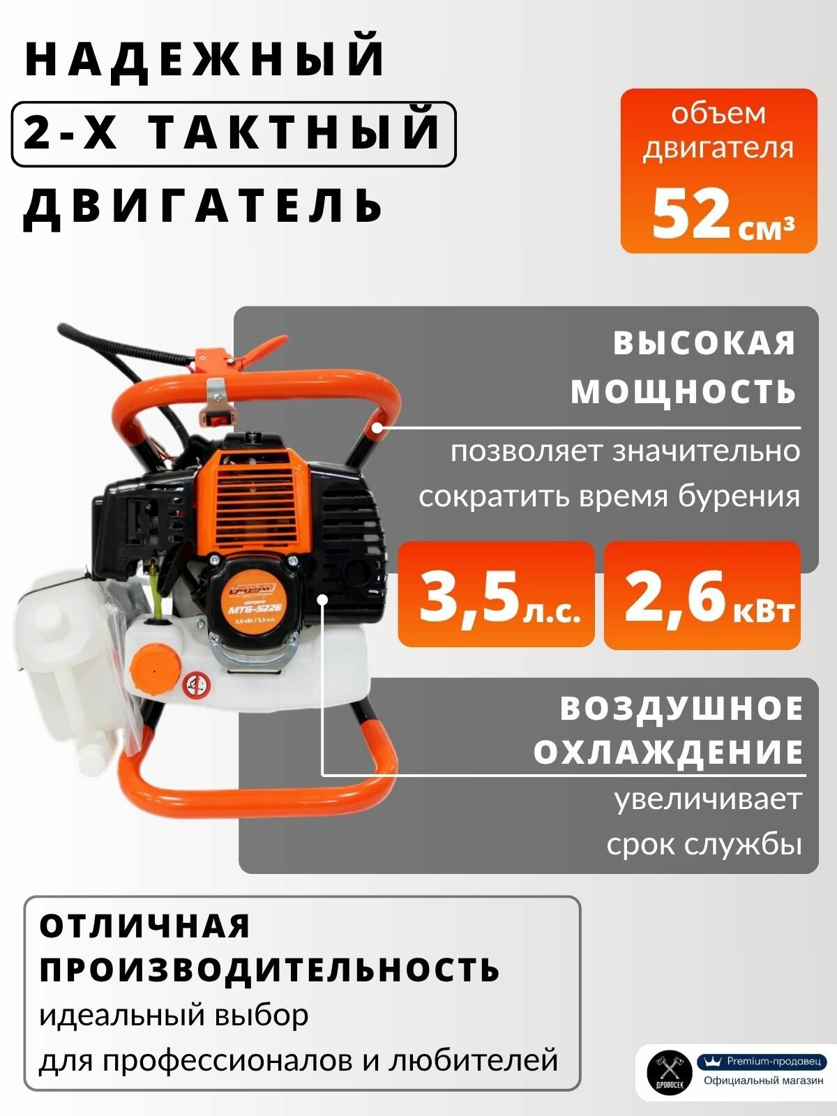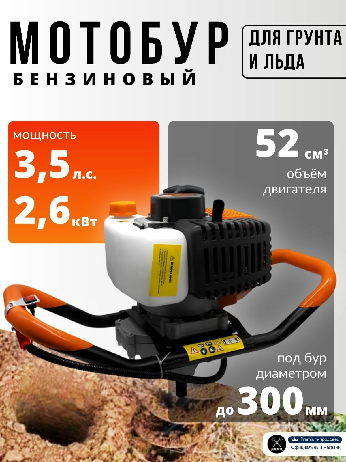 Купить Мотобур бензиновый INKAM МТБ-5226 (3.5лс/2,6кВ, шнек до 300мм) ямобур без шнека бензобур с доставкой по всей России.