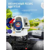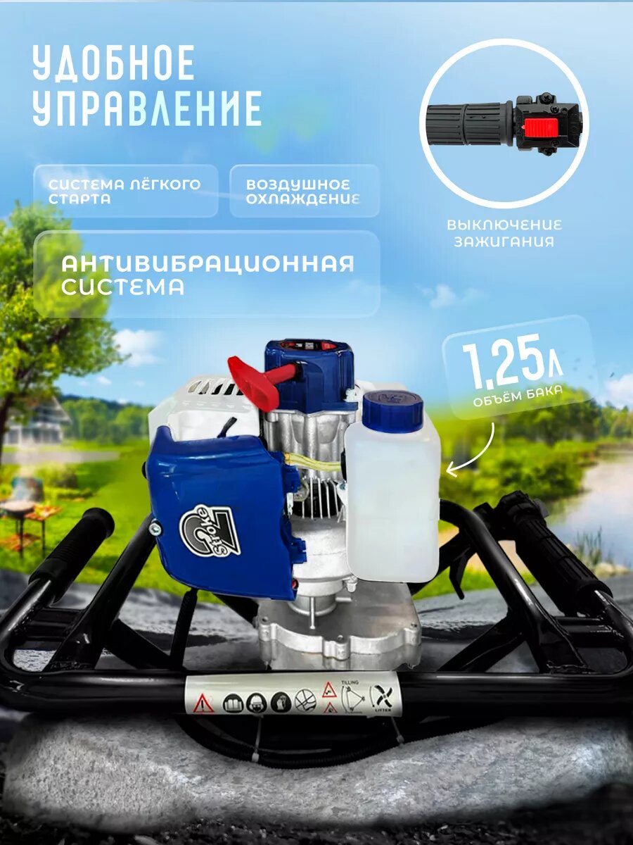 Мотобур бензиновый для грунта – идеальное решение для любых земельных работ и садовых проектов. Этот надежный и мощный буроям земляной позволит пробурить очень твёрдую землю для посадки столбов, свай и опор. Благодаря его двигателю объемом 52 кубических сантиметра, он способен справиться со сверлениями на большие глубины без потери эффективности. Этот мотобур очень прост в использовании благодаря своей конструкции. Он легко управляется и обеспечивает высокий уровень точности при бурении. Устройство работает на смеси бензина и моторного масла для двухтактных двигателей и работает на бензине АИ-92. Посадочное место - 20мм. Кроме того, этот мотобур может использоваться для бурения лунок под зимние рыболовные ящики на льду, безопасно и быстро проникая сквозь толщу льда. С этим мотобуром вы получите мощный инструмент, который обеспечит эффективность вашей работы в саду или на рыбалке.