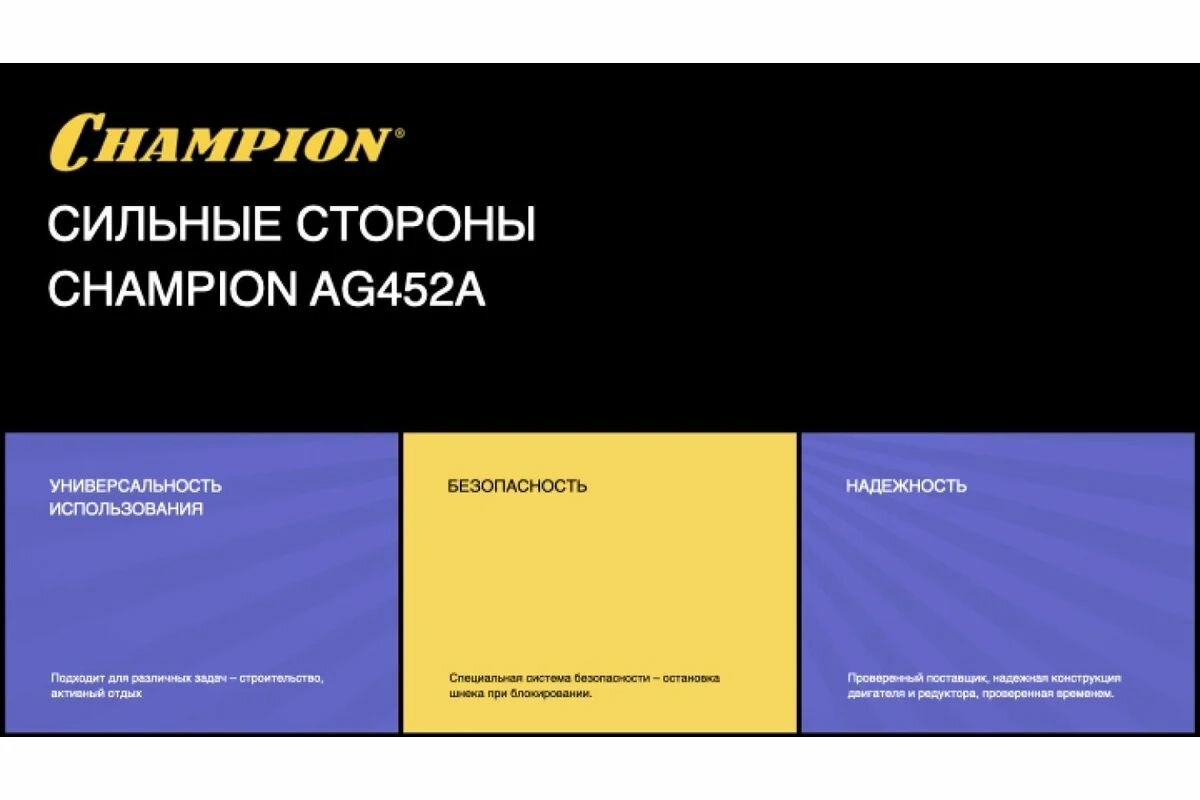 Купить Мотобур Champion AG452А 1,46 кВт, 52 см, 9,4 кг, без шнека AG452A с доставкой по всей России. Мотобур Champion AG452А 1,46 кВт, 52 см, 9,4 кг, без шнека AG452A: сравнение цен, характеристики, фото, актуальное наличие и цены.