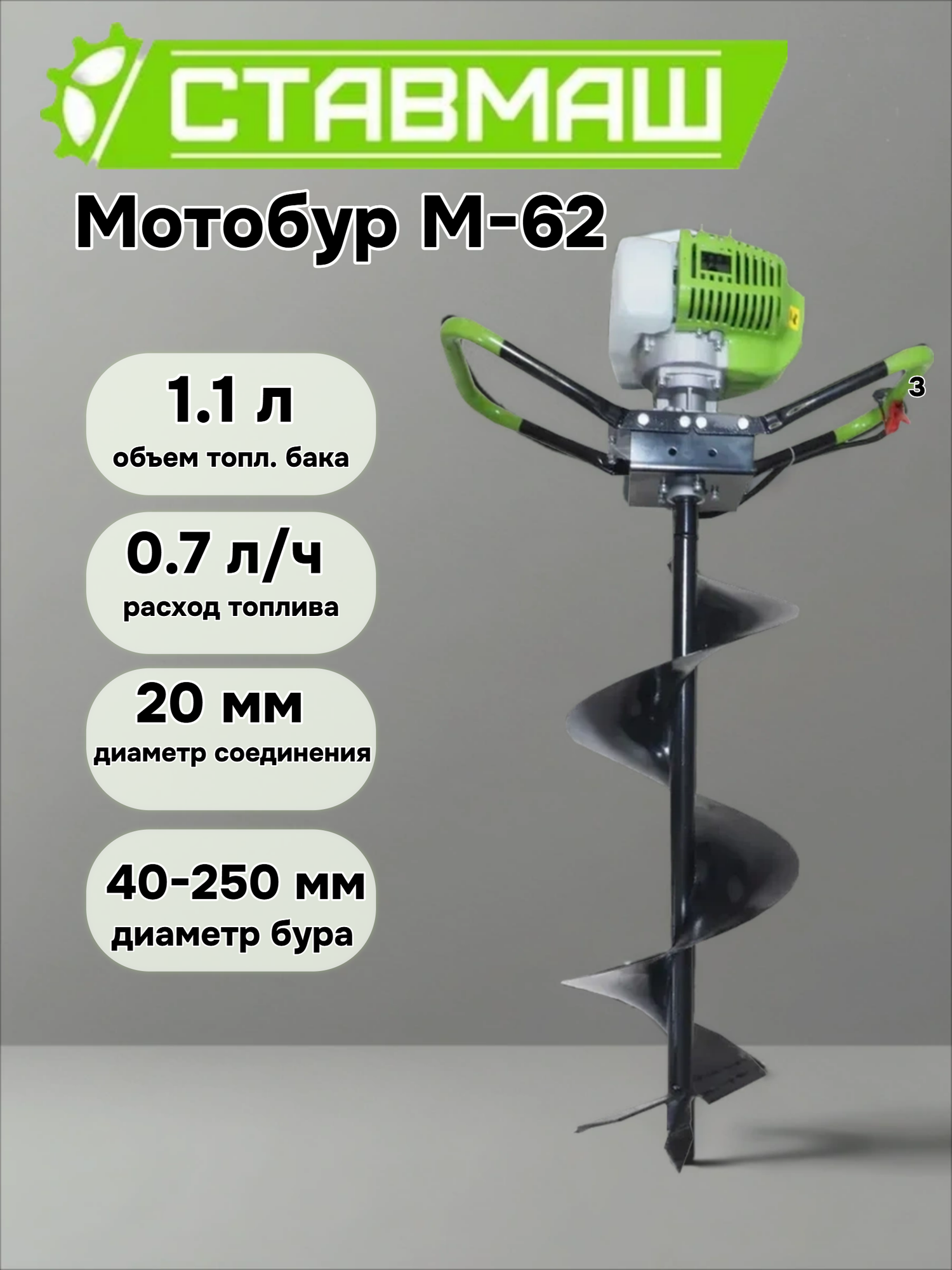 Мотобур Ставмаш «М-62», двухтактный двигатель, максимальная глубина бурения 75см: сравнение цен, характеристики, фото, актуальное наличие и цены.