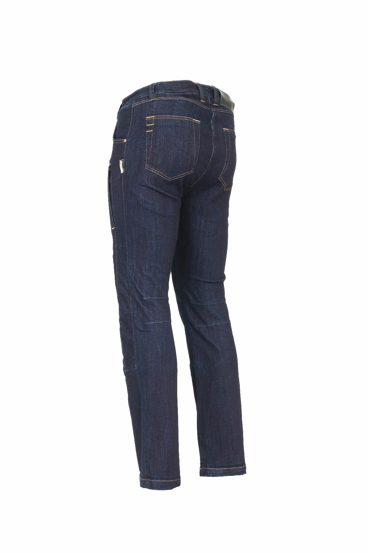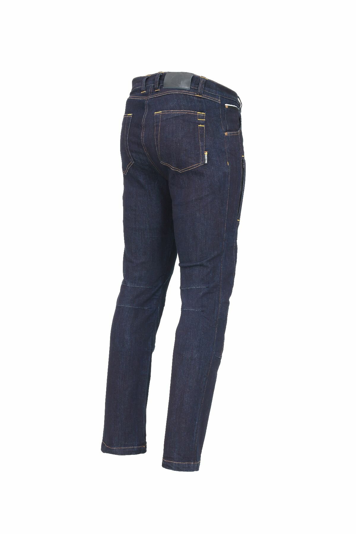 Для пошива мотоджинс Yauza Dark мастера Hyperlook использовали мягкий плотный хлопок с добавлением эластичных нитей. Благодаря такому составу вещь быстро адаптируется к контурам тела и не сковывает движения во время езды на мотоцикле. Модель украсили небольшими потертостями, придающими вид вещи с историей. Традиционно на данной модели используется защитный подклад Ruscore в области таза и колен, сертифицированные защитные вставки колена и бедра CC PROTECTORS в комплекте. Мотоциклетные джинсы Yauza Dark сделаны в стиле Slim и дополнены вентиляционными каналами на молнии в районе бедра.