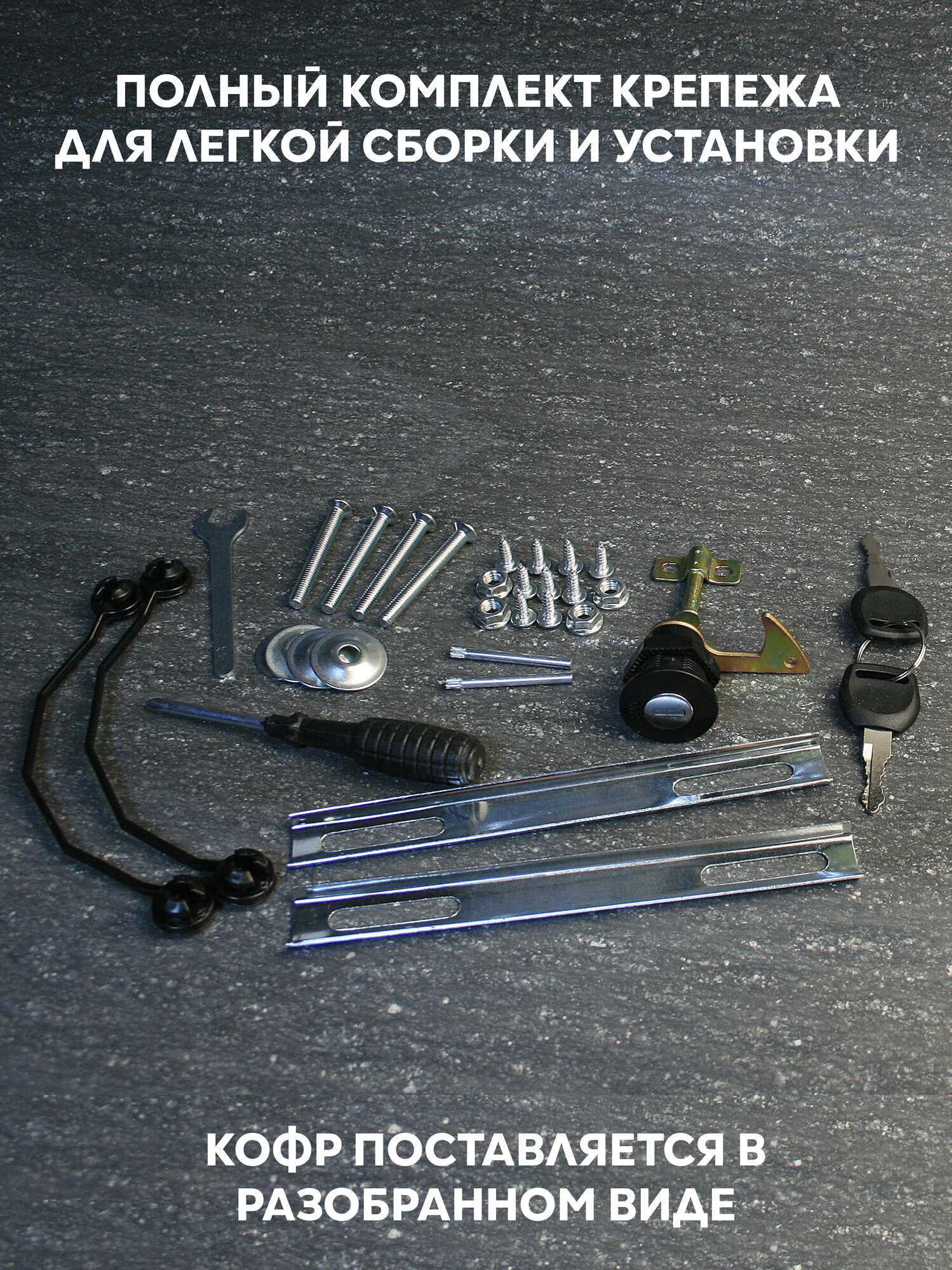 Мотокофр идеальное решение для вашего скутера. Размеры 43x41x20 см, вместимость 40 литров. Будь то ежедневные покупки, документы, шлемы, макинтоши или другие необходимые вещи, он легко вмещает всё необходимое для хранения. Высококачественные, лёгкие и экологичные материалы. Наш багажник изготовлен из высококачественных материалов ABS и PP, которые обеспечивают отличную износостойкость, устойчивость к давлению и водонепроницаемость. Эти лёгкие и экологичные материалы более предпочтительны, чем алюминиевые аналоги, и надёжно защищают ваши вещи даже при воздействии жаркого солнца, ветра и дождя. Процесс установки прост и быстр, без сложных инструментов, подходит для различных моделей мотоциклов и электромобилей, что позволяет вам легко наслаждаться всеми преимуществами багажника.