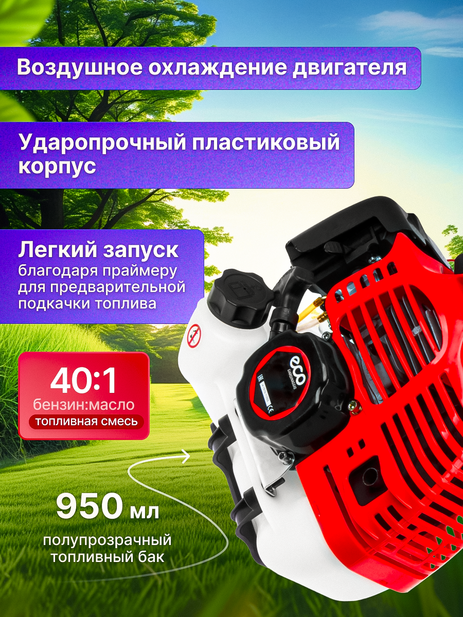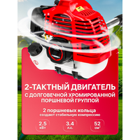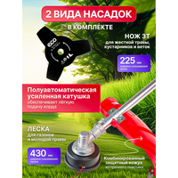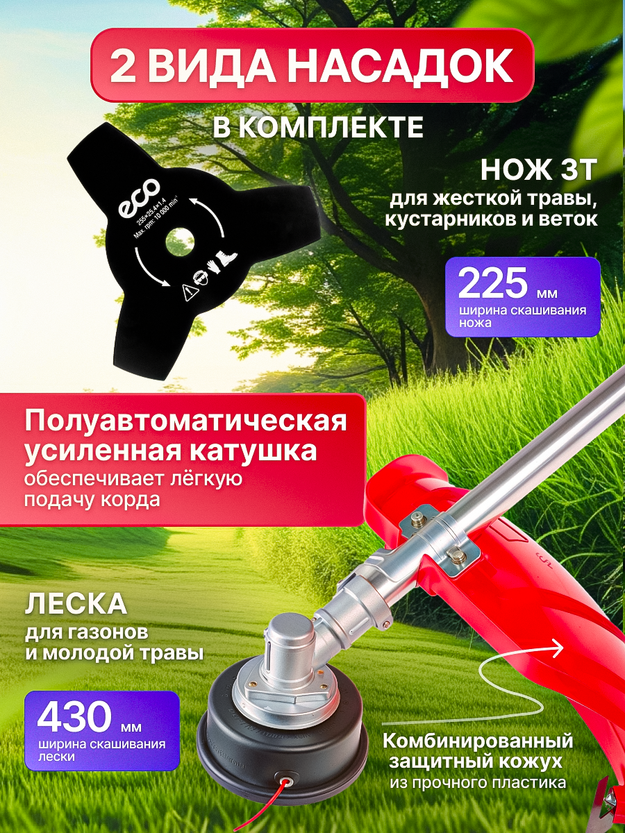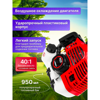 | Подробная комплектация | Тримммер бензиновый; Вал мотокосы с трубой; Триммерная катушка; Нож трёхлопастной; Кожух защитный с винтами крепления; Ремень плечевой (двухплечный); Комплект регулировочных инструментов и принадлежностей; Дозатор топливной смеси; Ручка левая; Ручка правая; Руководство пользователя |