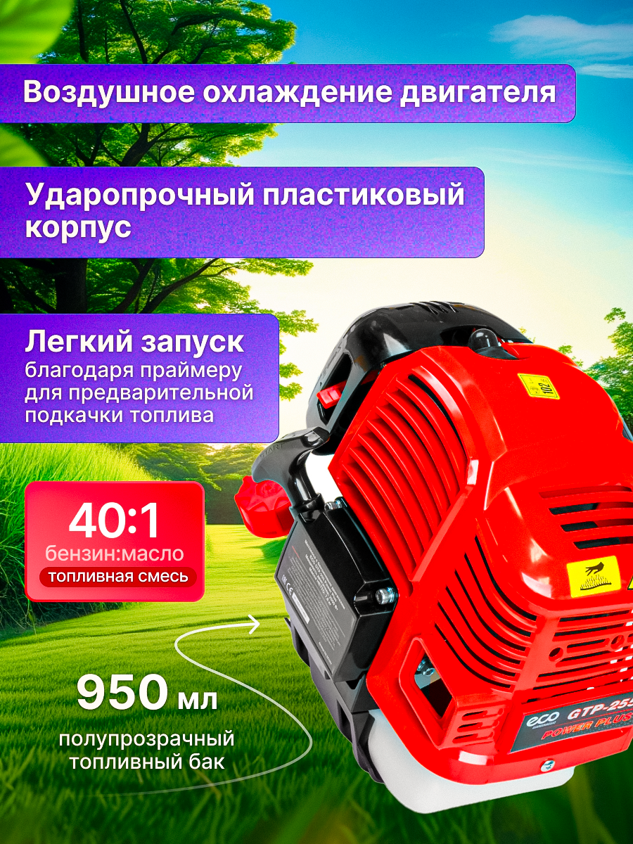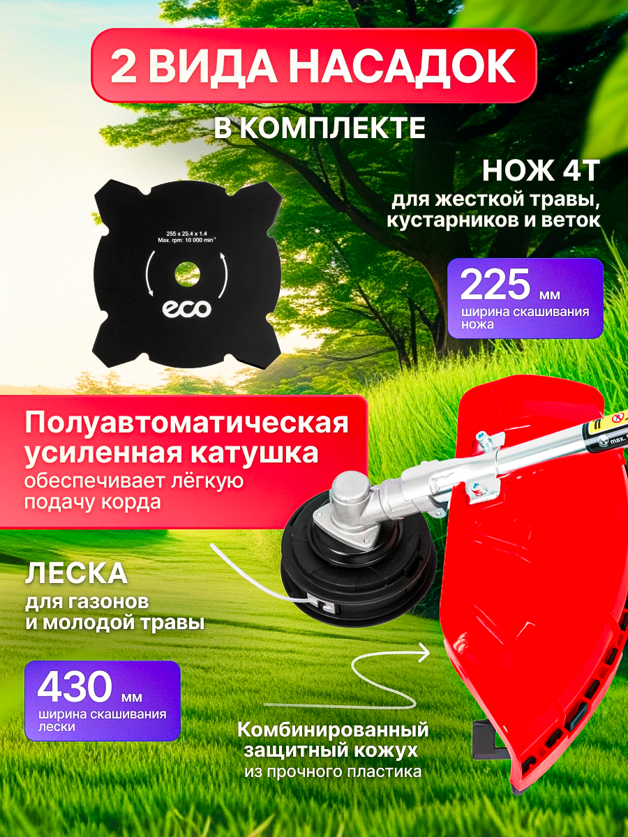 | Дополнительная информация | диаметр рабочей зоны ножа 25.5 см; посадочная резьба под головку М10х1.25; посадочный диаметр под нож 25.4 мм; система лёгкого запуска |
