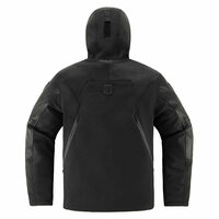 Черная мужская кожаная мотокуртка Icon Basehawk 2 Jacket с прямым корпусом и шарнирными рукавами является обновленной версией популярной модели, высоко оцененной поклонниками мотоциклетного образа жизни в стиле Icon. Основной материал изделия – высококачественная кожа толщиной 1,2 - 1,4 мм и прочный софтшелл с внутренним усилением. Куртка укомплектована съемной защитой спины D30 Viper, вставными противоударными протекторами в зонах локтей и плеч D30 Ghost, а также удобным складным капюшоном. Кожаная мотоциклетная куртка Icon Basehawk 2 оснащена шнурком регулировки талии для лучшей посадки и расширяющими молниями на манжетах рукавов. Для улучшения видимости мотоциклиста в темное время суток предусмотрены светоотражающие вставки. Максимальная вентиляция обеспечивается благодаря передней убирающейся сетчатой панели AirFly и вентиляционным отверстиям на премиальных молниях YKK на груди и спине.