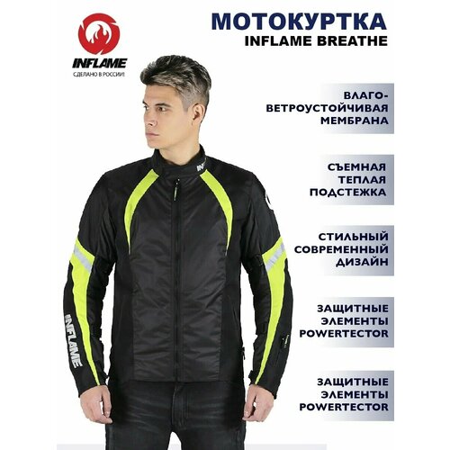 Купить Мотокуртка INFLAME BREATHE с мембраной и подстежкой, цвет зеленый неон, S размер с доставкой по всей России.