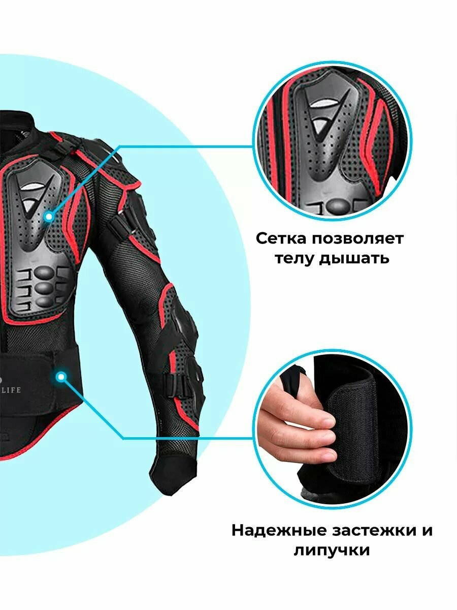 Защитная мотокуртка мужская для мотоспорта - это ваша безопасность для езды на мотоцикле. Мотозащита защитит вашу спину, даст гарантию защиты и безопасности. Мотокуртка выполнена из дышащей сетки, плотно прилегающий дизайн и регулируемый ремень. Мотоэкипировка мужская используется для мотоцикла, кросс байка, эндуро, пит байка, квадроциклов, bmx, езды на велосипеде, катания на лыжах и сноуборде, катания на коньках, а также может использоваться как куртка мужская зимняя для спорта. Куртка - лучшая защита для мотоспорта. Экипировка - это надежная защита тела. Мотозащита для вас!
