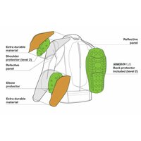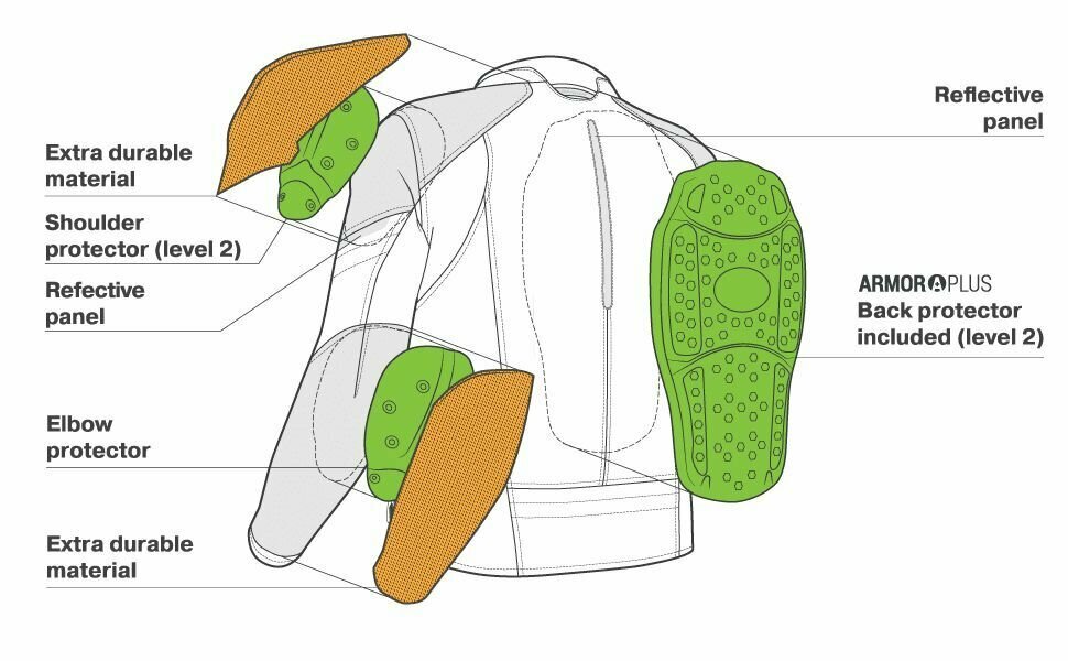 В куртке JET множество сетчатых панелей для отличной вентиляции. СЕ сертифицированная защита 2 уровня для максимальной безопасности. Также в куртке предусмотрена внутренняя подкладка ветровик и она же внешняя дождевик. Для пассивной безопасности в тёмное время на куртке встроены светоотражатели, а эластические вставки способствуют идеальной посадке и комфорту. Куртка отлично сочетается с одноимёнными брюками или джинсами.