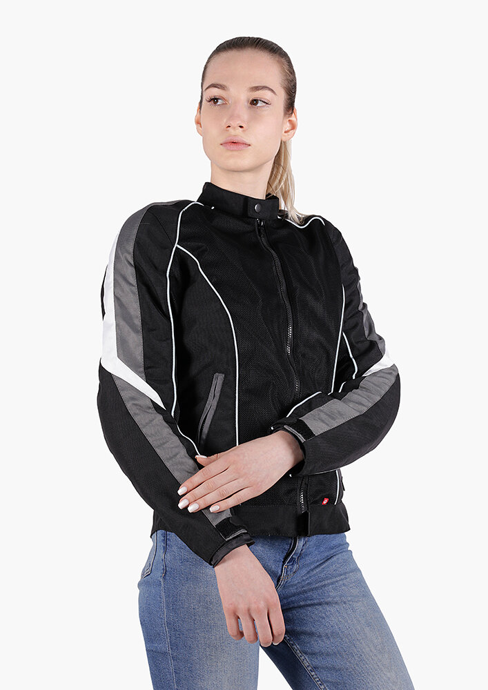Купить Мотокуртка женская INFLAME GLACIAL текстиль+сетка, цвет серо-черный, XXS размер с доставкой по всей России.