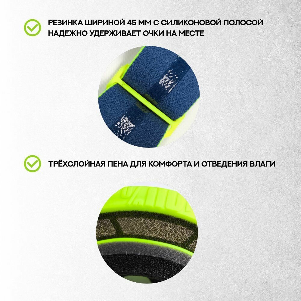 — Резинка шириной 45 мм с силиконовой полосой надежно удерживает очки на месте