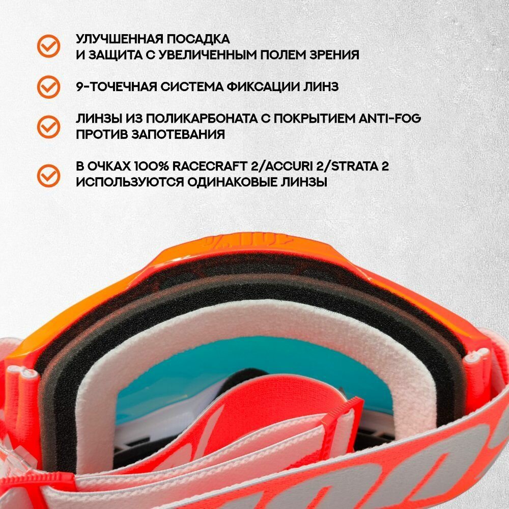 — В очках 100% Racecraft 2/Accuri 2/Strata 2 используются одинаковые линзы