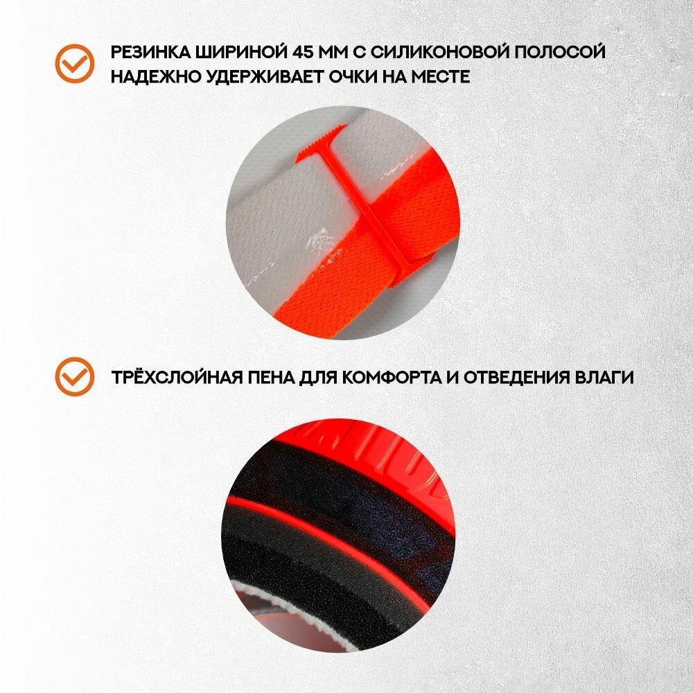 — Резинка шириной 45 мм с силиконовой полосой надежно удерживает очки на месте
