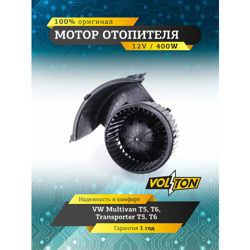 Мотор отопителя VOLTON совместим с моделями автомобилей Volkswagen Multivan T5 2003–2015, T6 2015, Transporter T5 2003–2015, T6 2015.