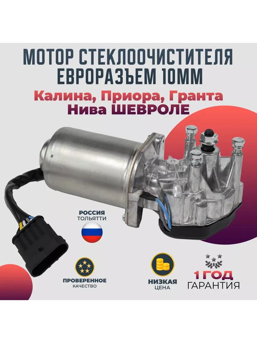 Мотор стеклоочистителя Калина, Приора, Гранта, Нива шевроле Моторедуктор стеклоочистителя 842.3730-10 Евроразъем (10мм) Предназначен для работы в системе очистки стекла автомобиля. Мотор стеклоочистителя передает усилие на механизм стеклоочистителя - трапецию, которая приводит в движение держатели щеток для очистки лобового или заднего стекла автомобиля, а так же фар головного света и фонарей.