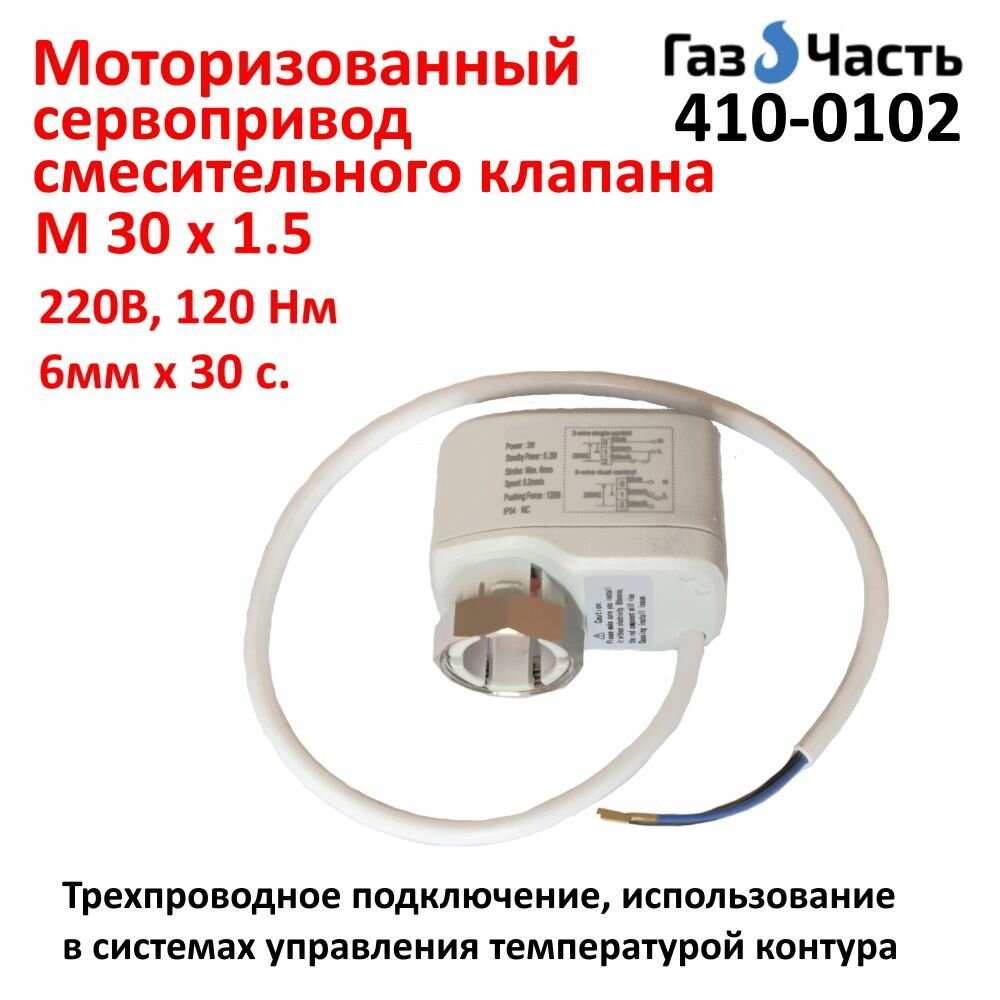 Электрический сервопривод игольчатого клапана 220В (возможность установки на смесительные клапана, коллекторные системы М30х1,5). В отличие от многих представленных на рынке подобных устройств исполнительный механизм выполнен на базе эл. двигателя с редуктором, что позволяет достаточно плавно и стабильно осуществлять открытие и закрытие клапана. Управление осуществляется внешним регулятором отопления, подключение по трехпроводоной или двухпроводной схеме. Напряжение 220В. Возможно применение в коллекторных системах управления контурами отопления, в том числе напольного, в отопительных группах с игольчатыми клапанами. Сервопривод осуществляет открытие или закрытие (в том числе промежуточные любые положения) клапана, что позволяет автоматике управления поддерживать в контуре отопления необходимую температуру с высокой точностью. Автоматика управления не поставляется совместно с сервоприводом. Совместим со всеми системами управления 220В.