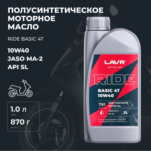 Полусинтетическое моторное масло для четырехтактных бензиновых двигателей, мотоциклов, квадроциклов, скутеров и мопедов и другой мототехники, где необходим уровень эксплуатационных свойств API SL или ниже и JASO MA/MA2.