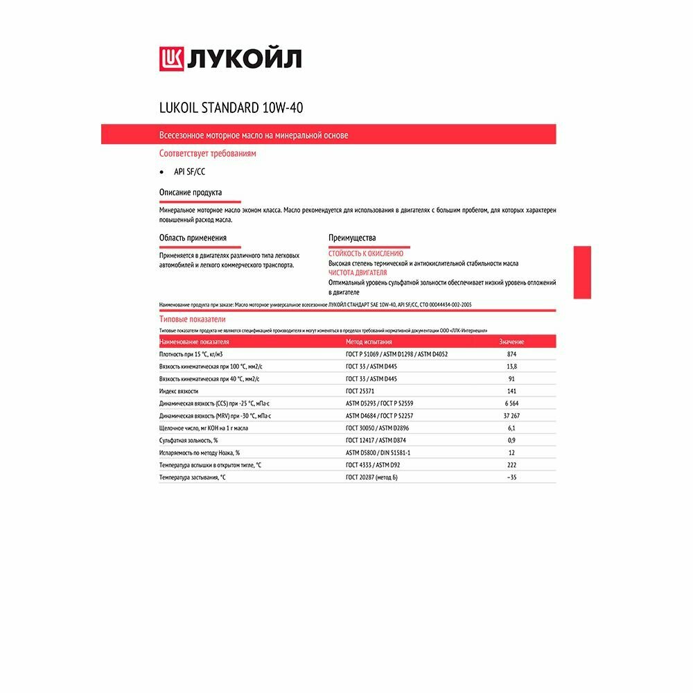 Купить Моторное масло Лукойл Стандарт 10W-40 SF/CC, минеральное, 5л с доставкой по всей России. Моторное масло Лукойл Стандарт 10W-40 SF/CC, минеральное, 5л: сравнение цен, характеристики, фото, актуальное наличие и цены.