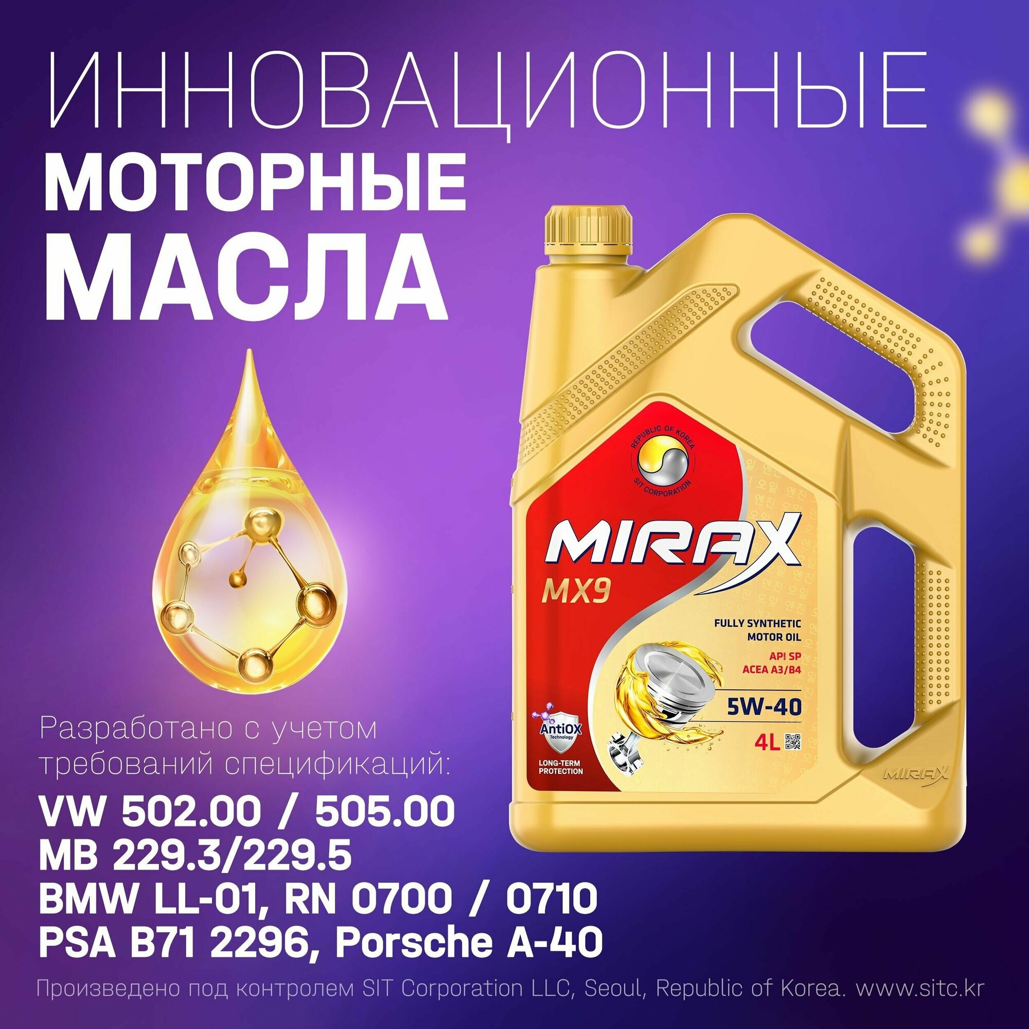 Купить Моторное масло MIRAX MX9 SAE 5W-40 API SP, ACEA A3/B4 4л (607031) с доставкой по всей России. Моторное масло MIRAX MX9 SAE 5W-40 API SP, ACEA A3/B4 4л (607031): сравнение цен, характеристики, фото, актуальное наличие и цены.
