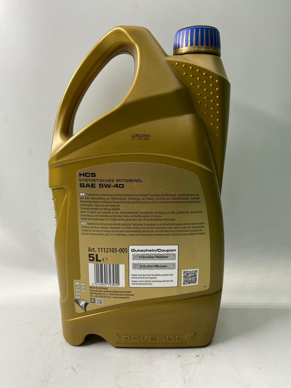 моторное масло RAVENOL HCS SAE 5W-40 5Л NEW с артикулом 111210500501999 поставляется от официального дистрибьютора, что гарантирует подлинность и высокое качество продукта. Штрих-код 4014835723955 подтверждает оригинальность и соответствие высоким стандартам качества.