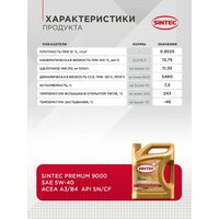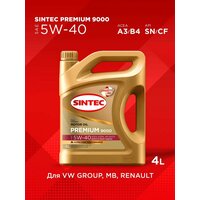 Масло моторное синтетическое Sintec Premium 9000 SAE 5W-40 ACEA A3/B4 4 Л: сравнение цен, характеристики, фото, актуальное наличие и цены.