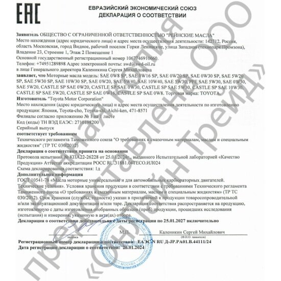Купить Моторное масло Toyota Motor Oil SP/GF-6A 5W-30 синтетическое 1 л (Япония) с доставкой по всей России. Моторное масло Toyota Motor Oil SP/GF-6A 5W-30 синтетическое 1 л (Япония): сравнение цен, характеристики, фото, актуальное наличие и цены.