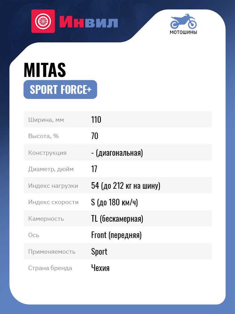 Купить Мотошина Mitas Sport Force+ 110/70 -17 54S TL Front с доставкой по всей России. Мотошина Mitas Sport Force+ 110/70 -17 54S TL Front: сравнение цен, характеристики, фото, актуальное наличие и цены.