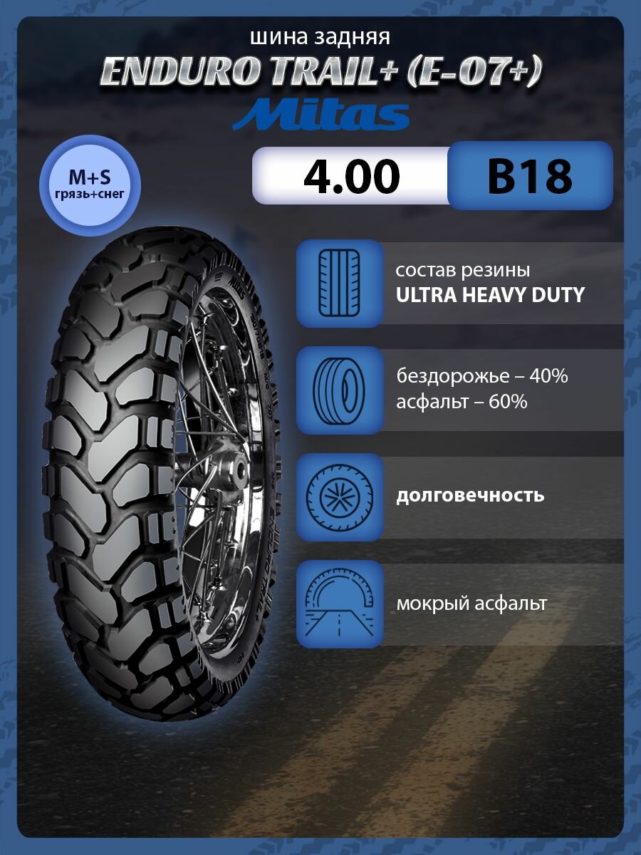 Мотошина Mitas ENDURO TRAIL+ 4.00-18 64H TL/TT Rear (Митас E-07+): сравнение цен, характеристики, фото, актуальное наличие и цены.