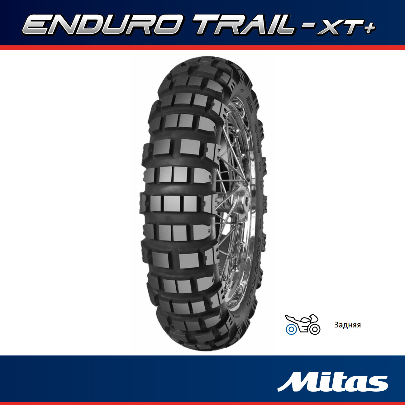 • Мотошины серии Mitas ENDURO TRAIL XT+ классифицированы как M+S и разработаны для обеспечения универсальных характеристик и уверенности на всех типах гравийной местности, особенно на сложном бездорожье, с возможностью использования на дорогах с твёрдым покрытием .